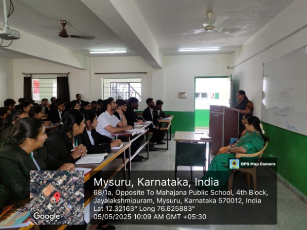 On 5th May 2025 a special lecture on constitutional value and its relevance was conducted in SBRR Mahajana Law College. The resource person for the event was S.Bhuvaneshwari, faculty member of SDM degree College Mysore all the students of first year LLB attended the guest lecture under the guidance of Principal Smt Sowmya K and the course teacher Smt. Rashmi R.
