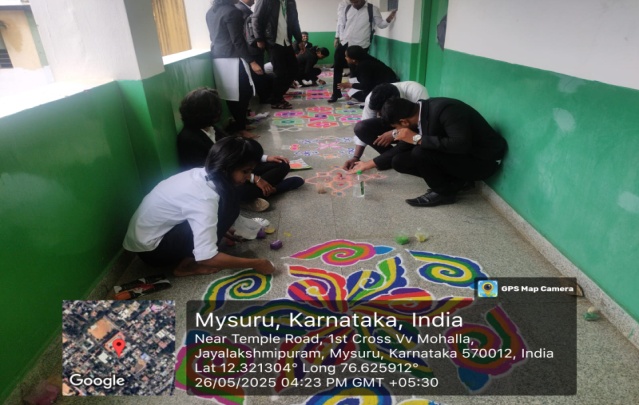 Cultural Activity for this academic year stated from 24.05.2025 to 28.05.2025 with initiation of Smt. Bhavya R Asst.Professor cultural events such as Ethnic Day, Various Singing Competition, Pick & Speech, Essay, Debate, Rangoli, Cooking without fire for all students of the college.