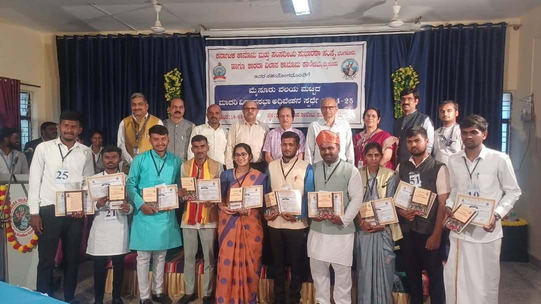 The “Model Legislative Assembly Session Competition 2024–25” for the Mysore zone was held on 18.03.2025 at Sharada Vilas Law College, Mysuru, organized by the Karnataka Institute for Law and Parliamentary Reform. The event aimed to educate students on parliamentary procedures and instill democratic values. Four students from S.B.R.R. Mahajana Law College actively participated in the competition. Final-year student Bharat secured 4th place and was selected for the next level of the Model Assembly Session.