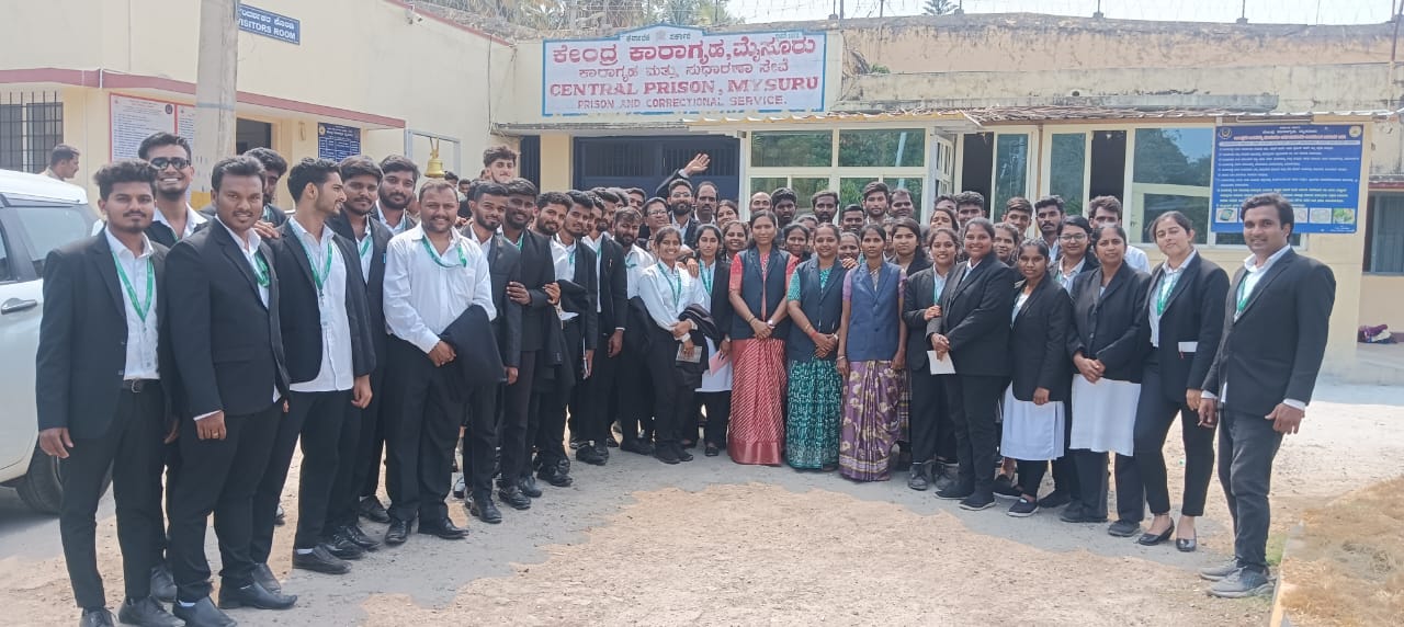 On 20.03.2025, the 1st Year LL.B students of SBRR Mahajana Law College visited Mysuru Central Prison as part of their academic curriculum under the coordinatorship of Smt Bhavya, Assistant Professor. The visit provided insights into prison administration, inmate rights, and rehabilitation measures. Students interacted with jail authorities and learned about the functioning of correctional institutions.