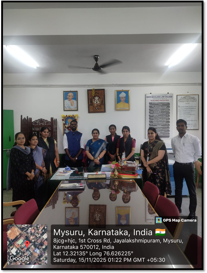 A guest lecture on Constitutional Law was organized on the Topic: Article 14 for the students of SBRR Mahajana Law College on November 15th. The session was delivered by Sri Harish G., Assistant Professor, St. Joseph Law College, who provided valuable insights into the principles of equality enshrined in the Constitution.The programme was coordinated by Assistant Professor Ms. Rashmi R., ensuring the smooth and effective conduct of the event.The lecture enriched students’ understanding of Article 14 and its practical significance in contemporary legal discourse.
