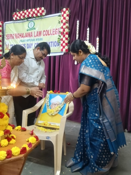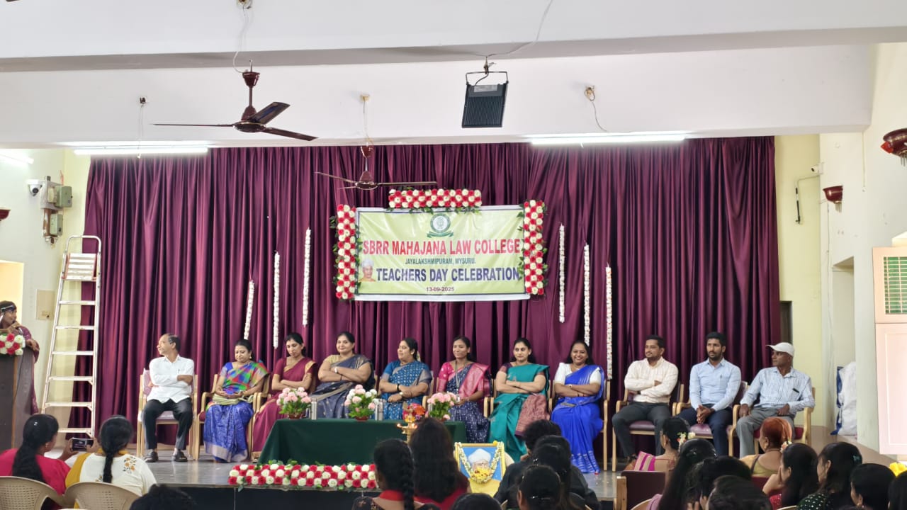 All the students celebrated teachers day on 13th September 2025. The chief guests for the event were Sri. Nagesh, Founder of Viveka Vidyalaya and Smt. Bhavani Nagesh, Administrative officer of Viveka Vidyalaya, mysuru. The programme was witnessed by the Principal Smt. Sowmya K and all the teaching and non teaching staff of SBRR Mahajana Law College, Mysuru.